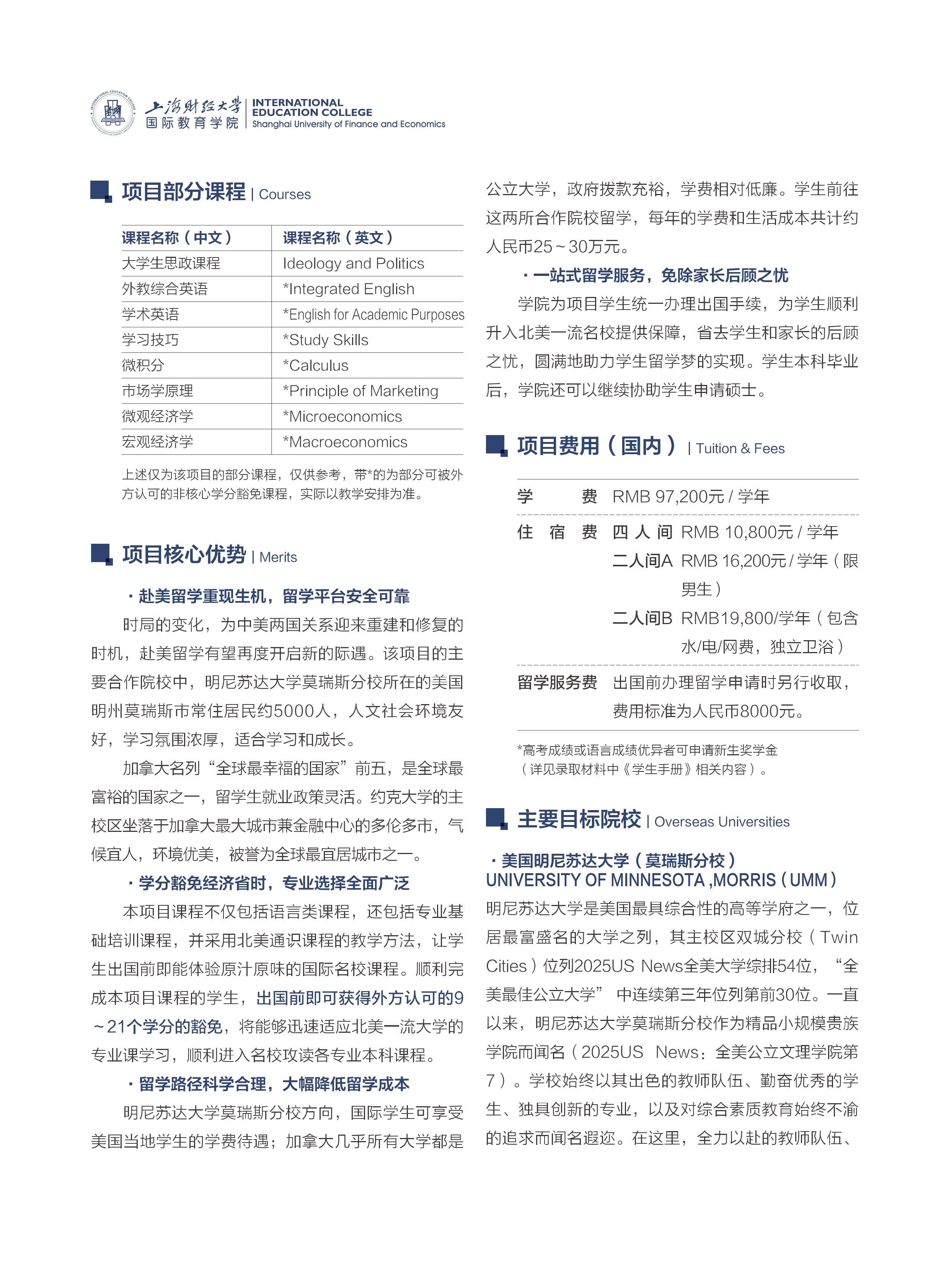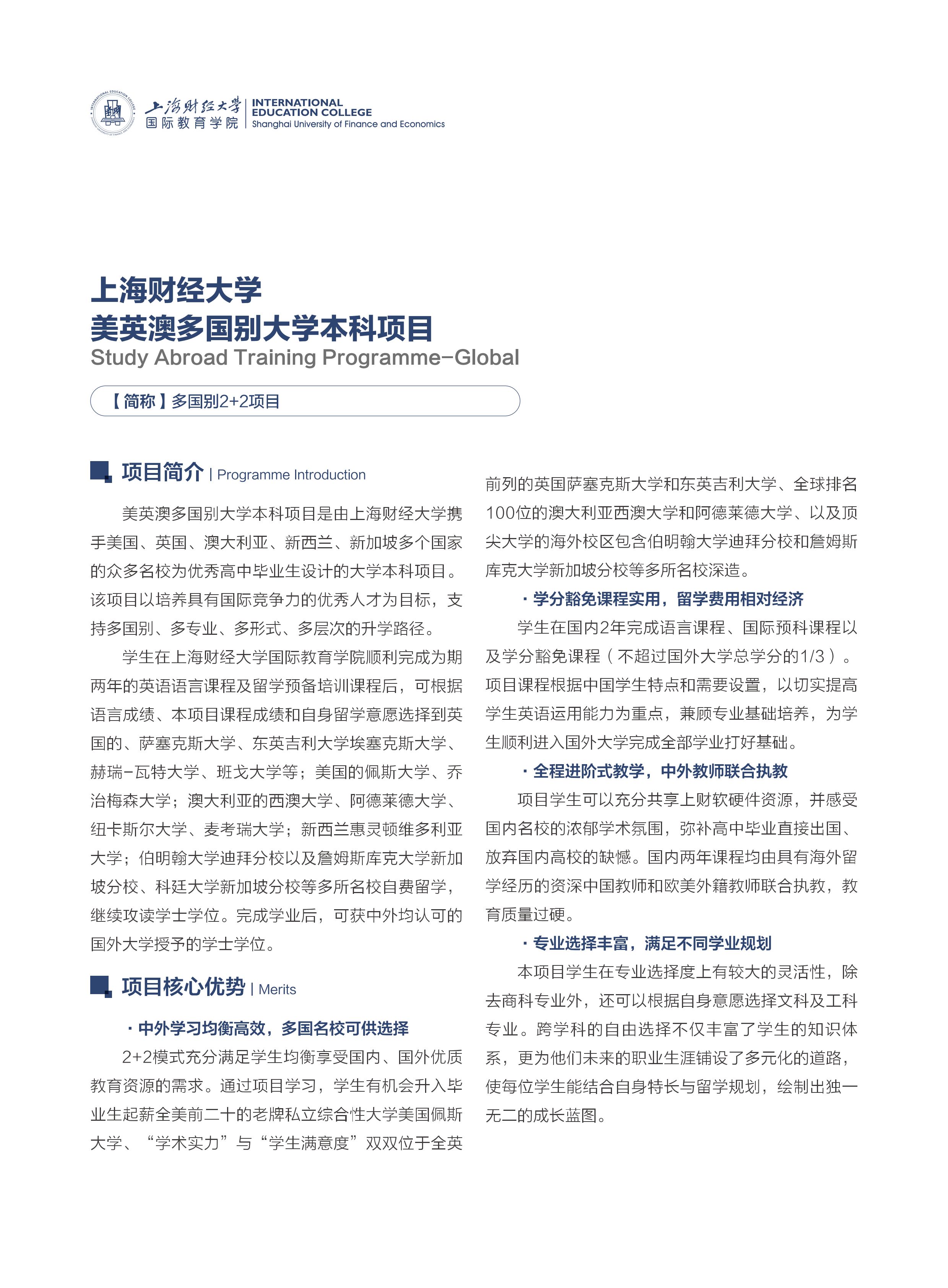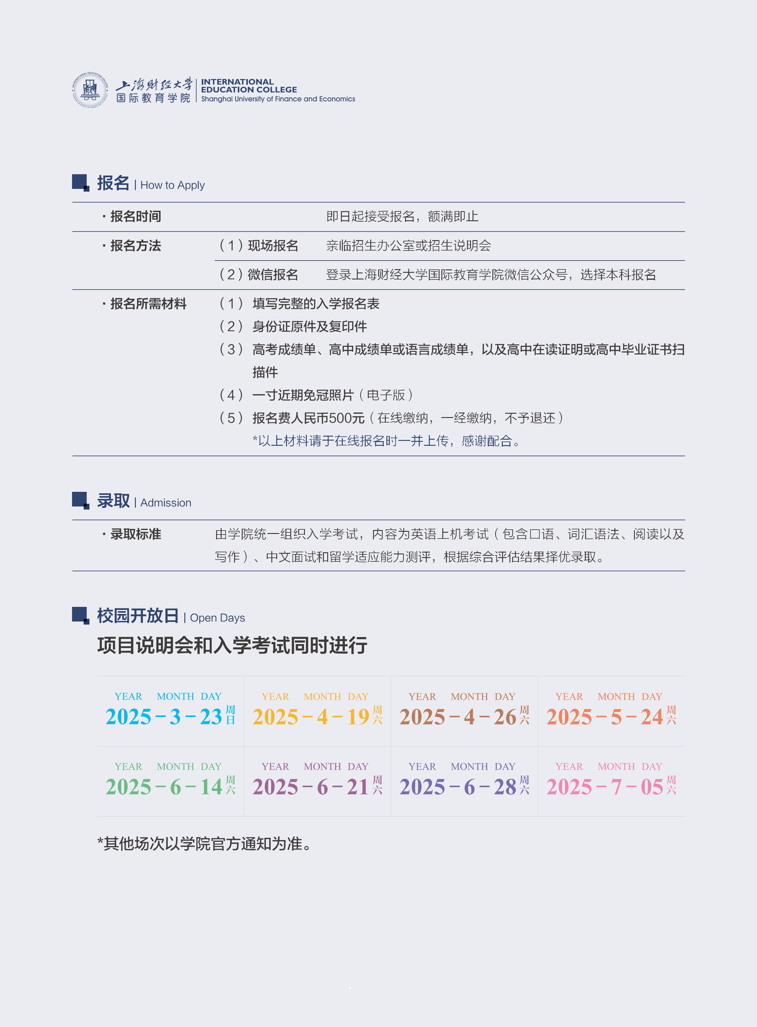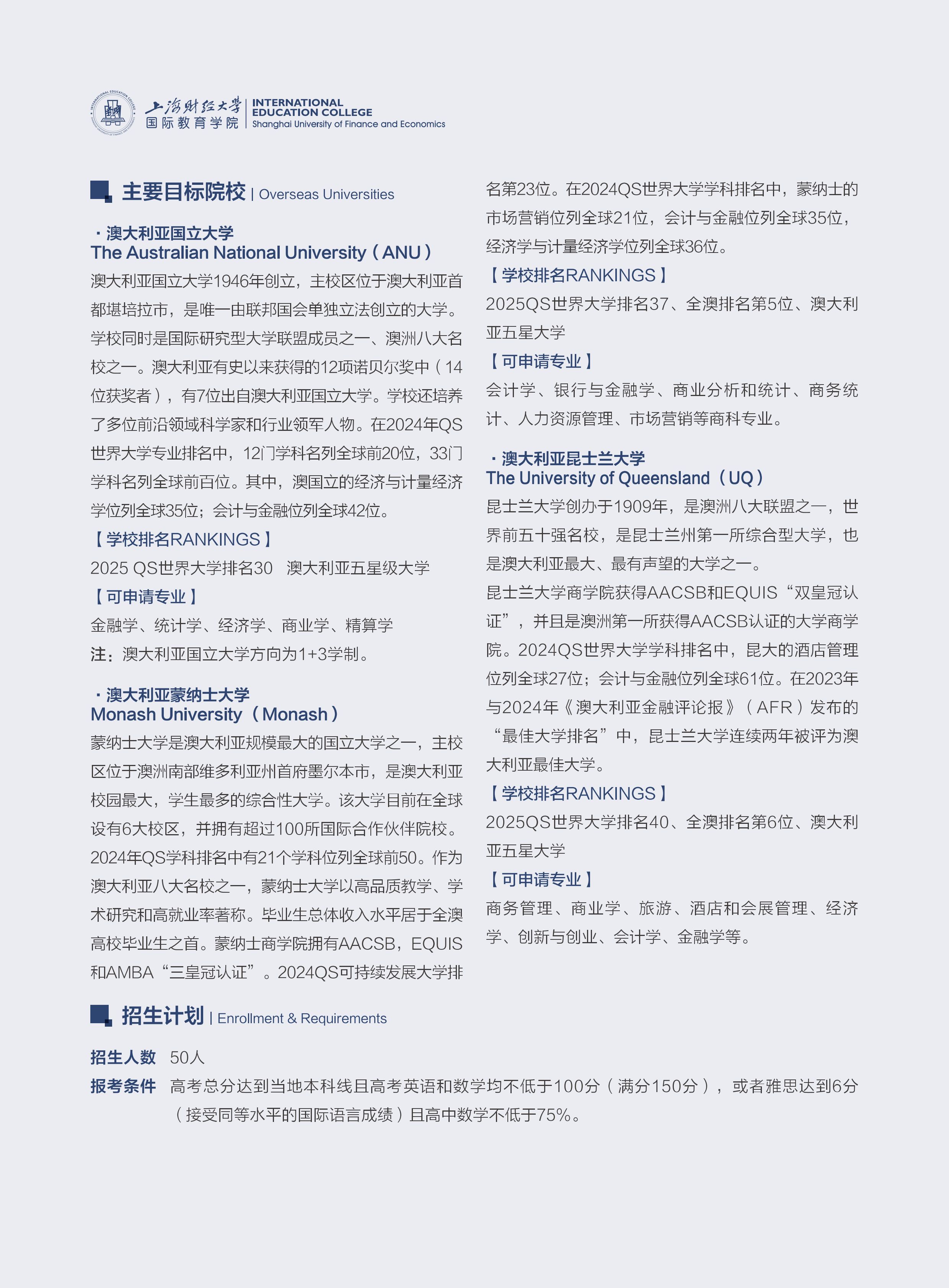 [招生简章] 上海财经大学国际教育学院2025秋招项目手册