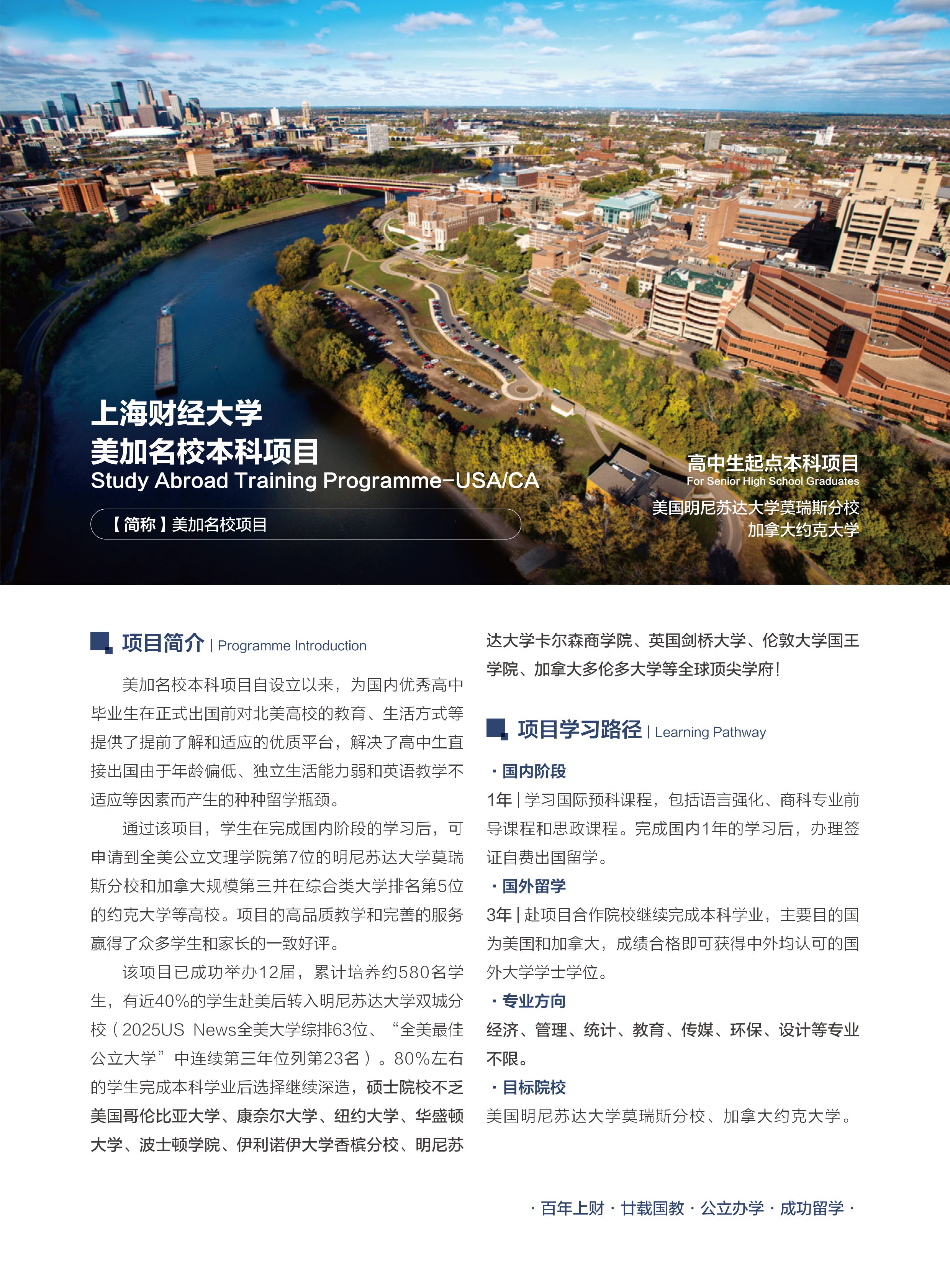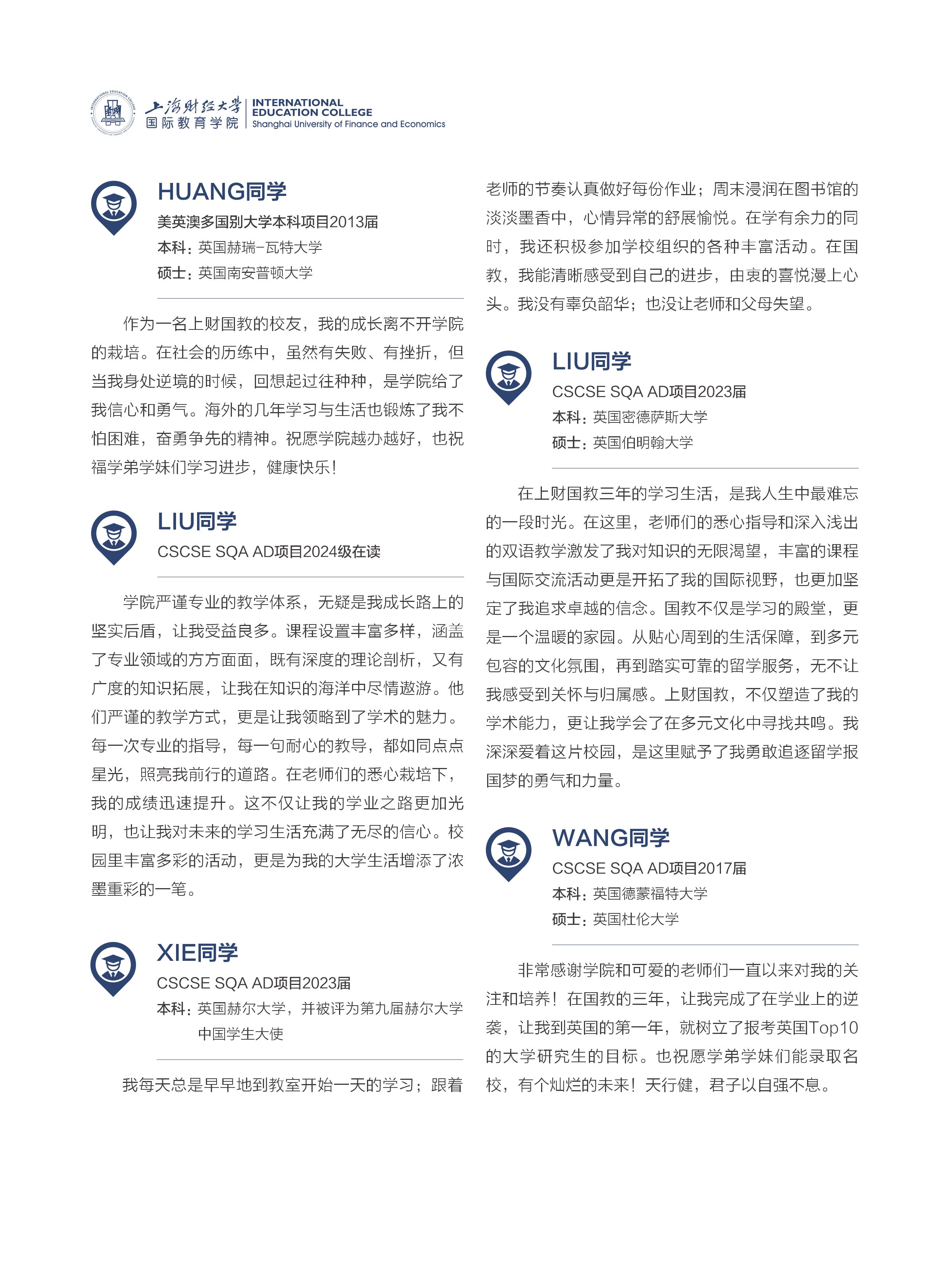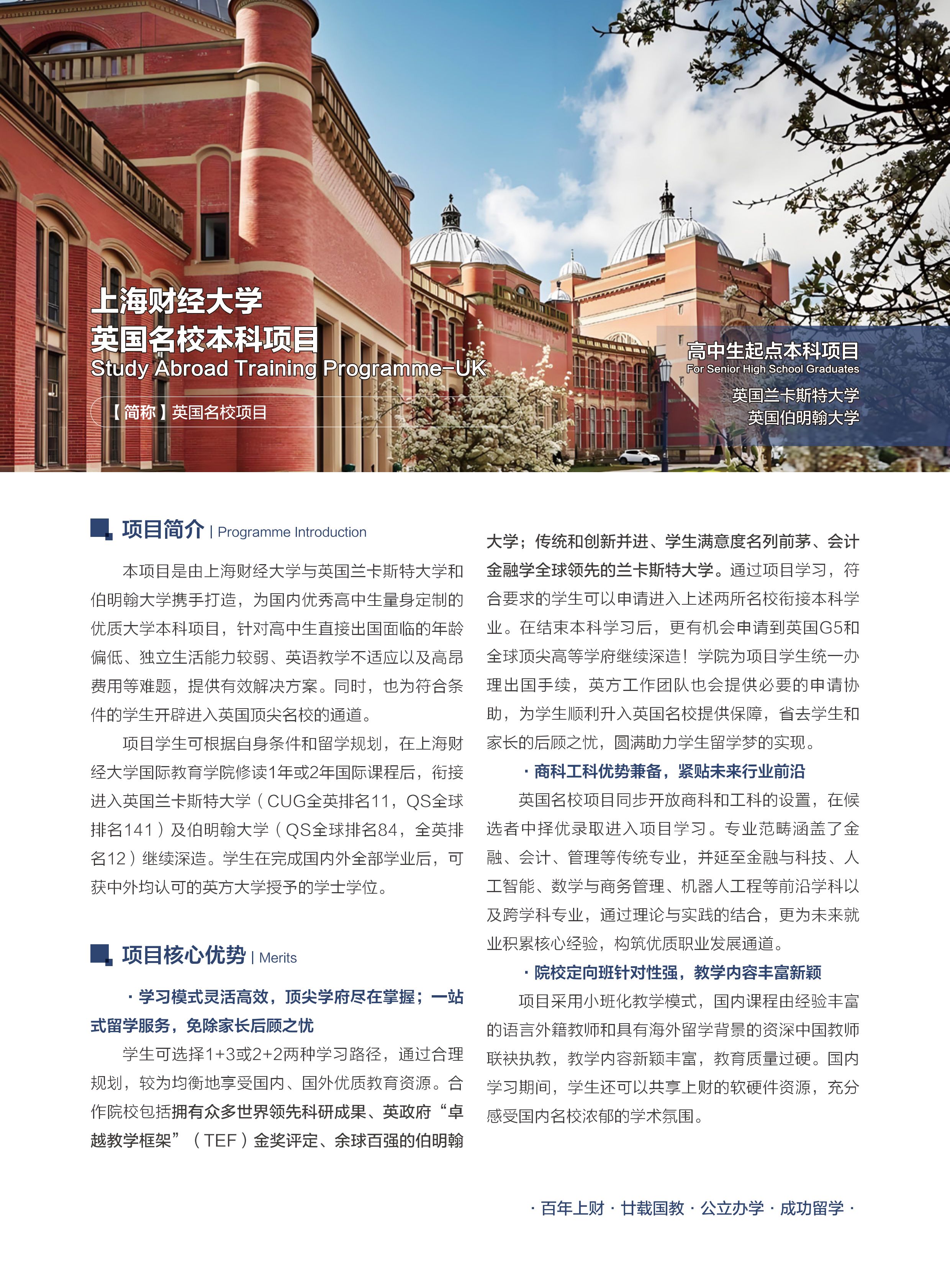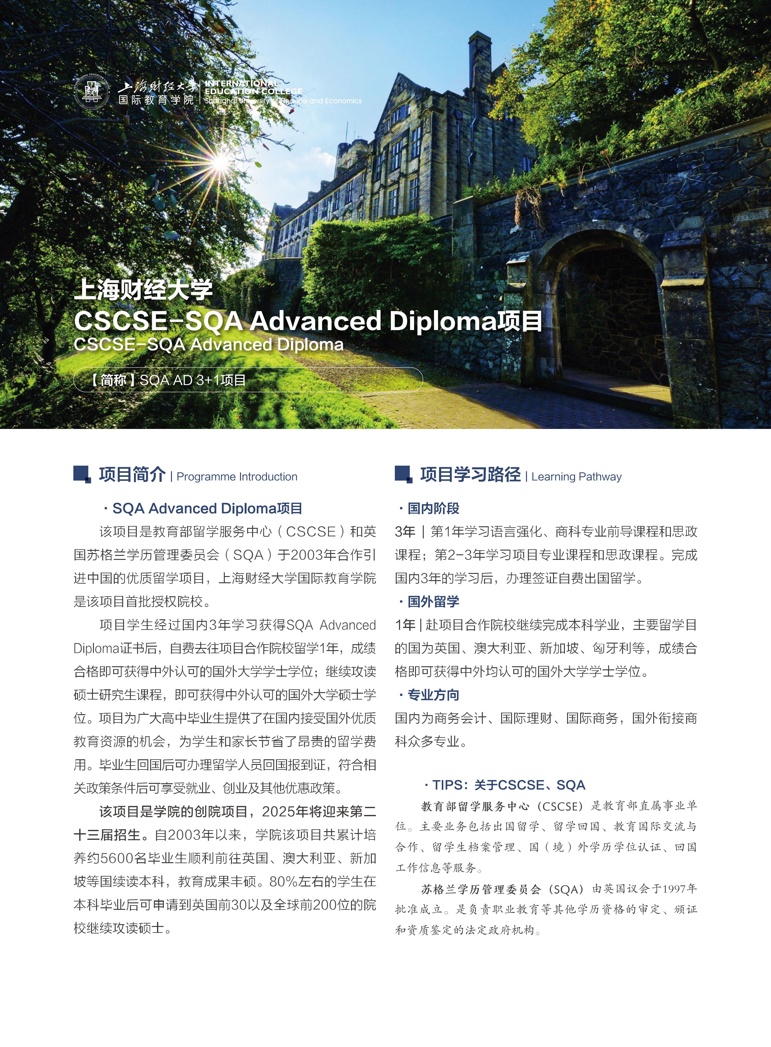 [招生简章] 上海财经大学国际教育学院2025秋招项目手册