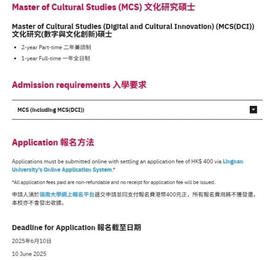 香港岭南大学同样加入了延期申请的行列。其2025年以下专业申请截止日期延期至2025年6月10日,包括 :