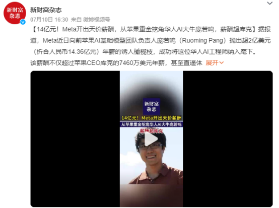 • 庞若鸣(Ruoming Pang):前苹果基础模型团队负责人,Meta以2亿美元薪酬包(含股权和奖金)将其招致麾下,这一数字远超库克等苹果高管的年薪。庞若鸣在语音识别和多模态模型领域的成果被视为Meta突破AGI技术瓶颈的关键。