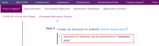 香港中文大学26Fall大部分硕士专业将于2025年9月1日开放常规批次申请通道。