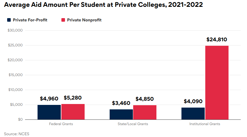 此外,NCES报告称,非营利性私立大学为学生提供的平均学校资助金额约为25,000美元,而营利性大学仅为4000美元。