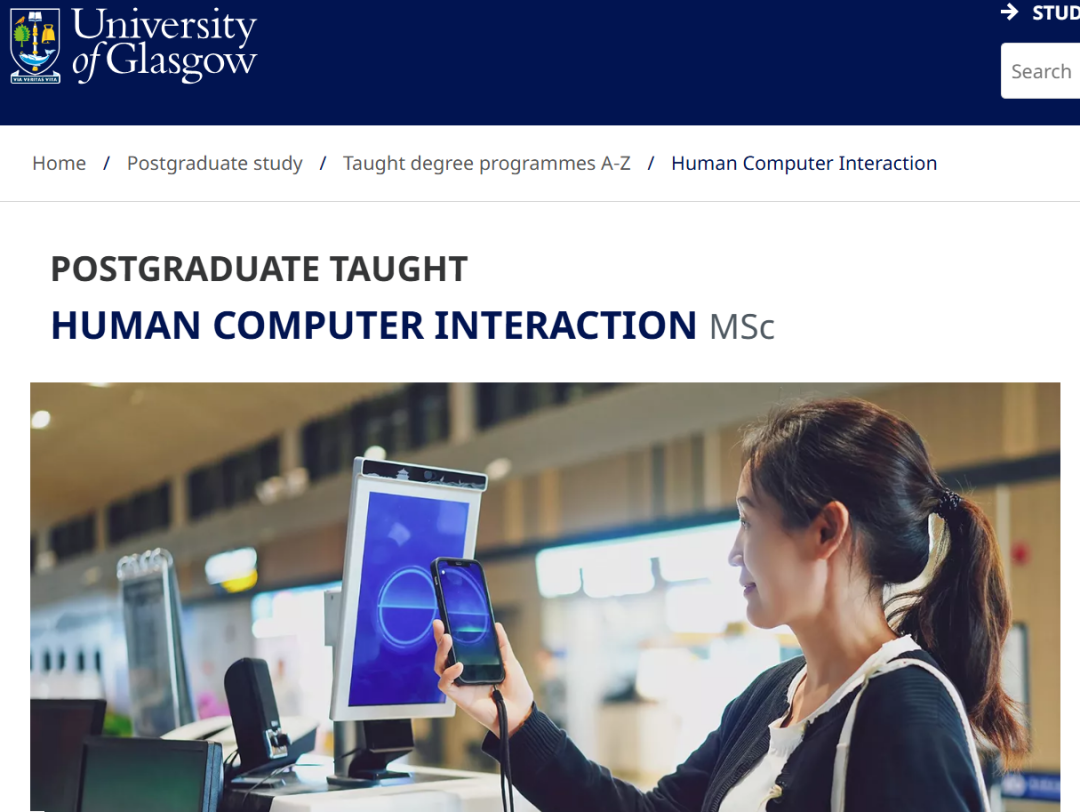 格拉斯哥大学宣布26fall新增人机交互硕士(Human Computer Interaction MSc),旨在让具备计算机科学基础知识及良好编程技能的学生,学习先进的交互式技术以及以人为本的交互式系统设计与评估方法,从而确保所设计的系统对人们切实有效。