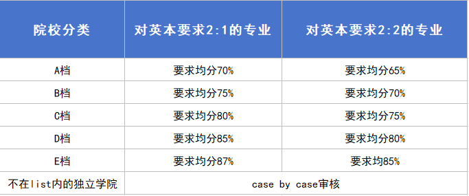 26fall格拉斯哥将中国大陆院校划分为A/B/C/D/E共五个档次,最低均分要求降至65分,最高卡87分。