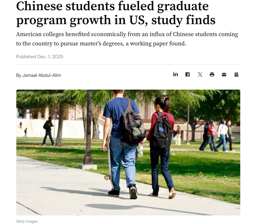 最近,美国国家经济研究局发布的一份报告揭示,中国留学生群体对美国研究生课程的发展起到了推动作用。美国高校因大量中国学生赴美攻读硕士学位而收获了可观的经济收益。