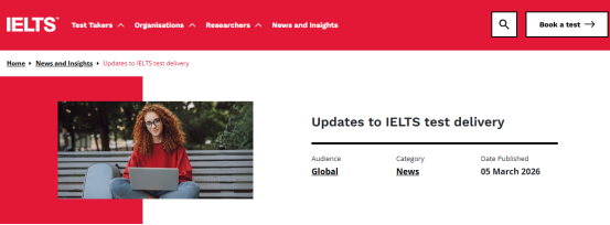 北京时间2026年3月5日,雅思官方发布重要通知!