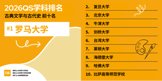 其中复旦大学的古典文学与古代史,位居全球第二;北京大学的古典文学与古代史位居全球第三。