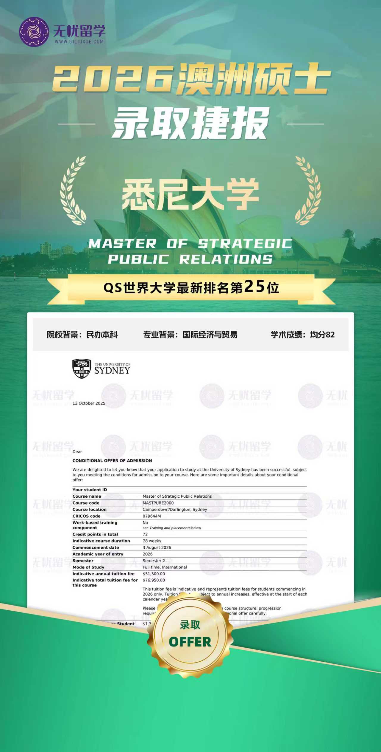 考研后转向英澳留学,时间紧、任务重、信息杂,选择专业机构至关重要。无忧留学深耕英澳留学多年,专为考研党打造紧急联申绿色通道,以一站式服务解决申请难题,助力学子快速斩获名校offer。无忧留学精准掌握两国院校最新录取政策与截止信息,能快速筛选考研后仍有余额的优质项目,避免错过申请窗口期。专属文书老师深度挖掘考生学术亮点与考研经历,分别打磨适配英澳的差异化文书,拒绝模板化突出个人优势。从选校定位、材料筹备、递交申请到录取跟进、语言班申请、签证办理,无忧留学实时跟进申请进度,及时解决突发问题,确保每一步都高效推进。无需再为考研失利焦虑,无需再独自摸索留学申请,我们将以丰富经验与优质服务,为你打通英澳名校升学通道!