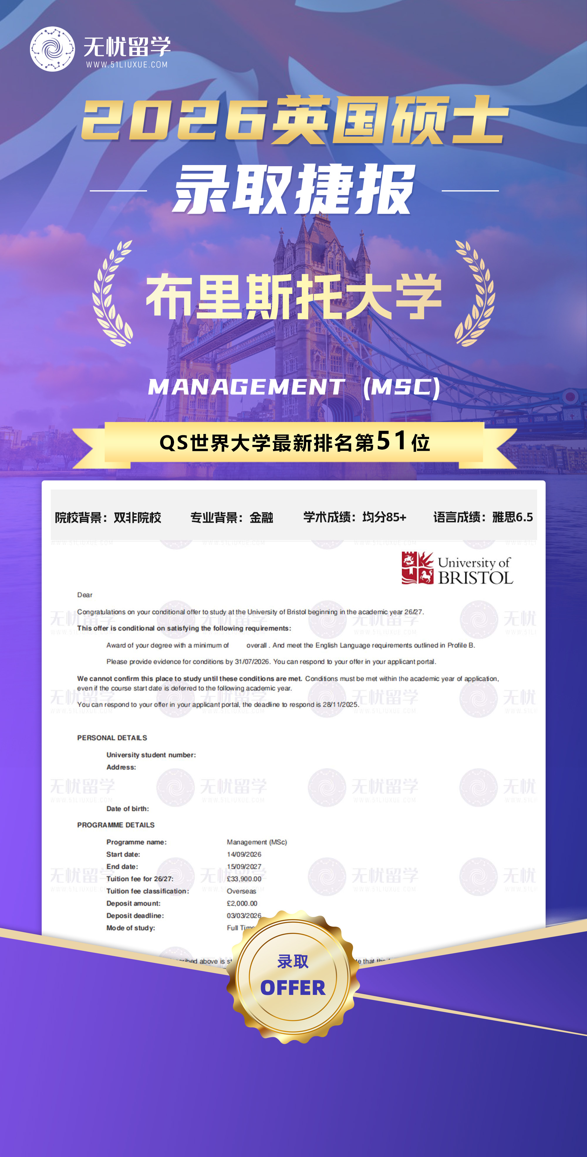 考研后转向英澳留学,时间紧、任务重,选校、文书、申请、签证每一步都不容出错。无忧留学深谙26fall申请规则与院校偏好,从背景评估、选校定位、文书定制到申请递交、签证办理、行前指导,全程一对一跟进,解决所有申请难题。我们拥有英澳院校一手招生信息,精准匹配学生背景与热门专业,文书团队由海外名校导师领衔,结合考研经历突出个人优势,大幅提升录取率。选择无忧留学,就是选择高效、稳妥、专业的升学保障,让考研失利成为留学逆袭的起点,奔赴更广阔的未来。