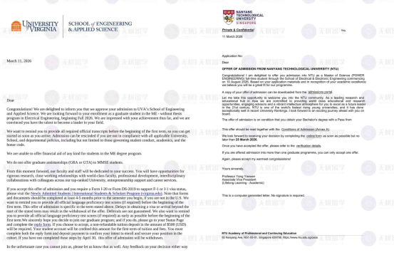 恭喜无忧留学学员Z同学,本科就读于大连海事大学,凭借均分82.5的扎实学术基础,“国际联合培养+本土工科深耕”的复合背景,突出的工科实践与专业适配性,成功实现“电子信息工程→电气工程/动力工程”的精准适配,一举斩获两大顶尖院校硕士录取!