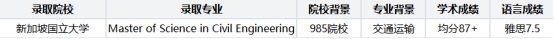 以下为本次新加坡国立大学硕士录取学子的详细背景及录取信息,为后续计划申请新加坡院校的学子提供参考: