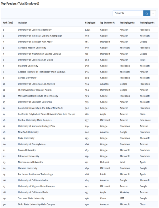下面,就让我们一起来看看向硅谷大厂输送的毕业生最多的TOP30美国大学: