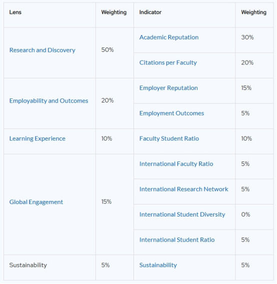 2026QS世界大学排名是基于以下各项指标的加权指数得出:
