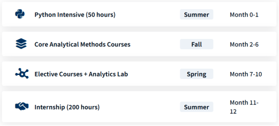 包括分析方法的核心课程,如统计分析、优化方法、风险管理等。