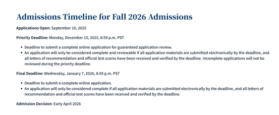 注意啦!准备26Fall申请美国硕士的同学们,加州大学伯克利分校(UCB)的分析学硕士(Master of Analytics)在26fall申请季首次推出优先申请批次(Priority Round)。相比以往的申请安排,此次优先批次的设立,无疑是给大家提供了一条 “快车道”。