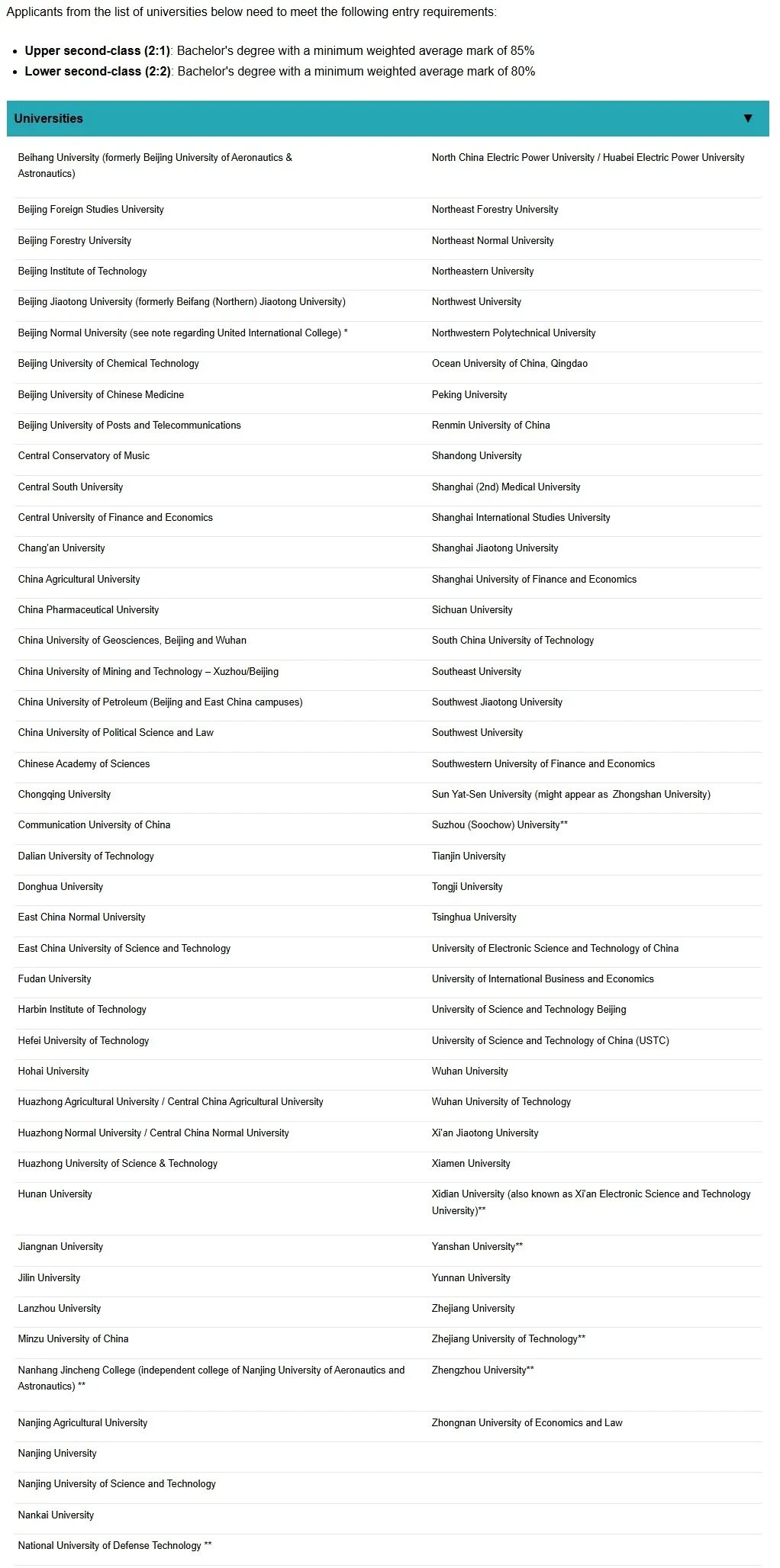另外,爱丁堡新增了两个额外Appendix附表,对可接受的中国院校背景进行了补充说明: