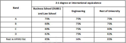 爱丁堡大学26fall按照专业来划分申请要求,共分为Band A/B/C/D四个档位: