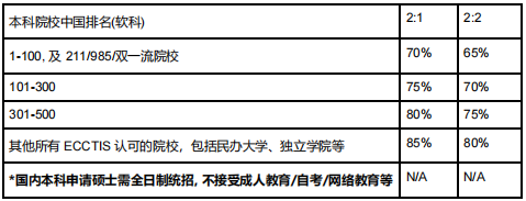 • 申请2:2学位专业:学士学位,最低加权均分80%