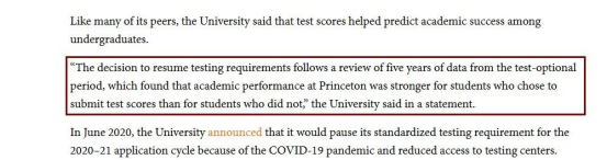 招生委员会觉得标化成绩依旧是预测学生在普林斯顿大学这类高强度学术环境中能否取得成功的一个有效指标。