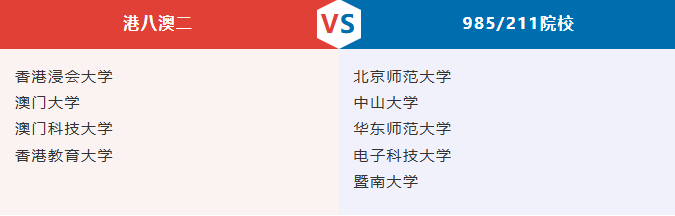• 香港恒生大学、澳门理工大学及澳门城市大学的办学水准,可与内地211高校相媲美。