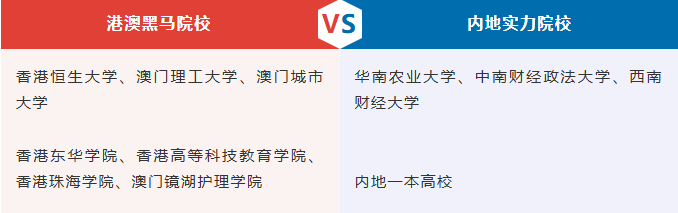 • 香港东华学院、香港高等科技教育学院、香港珠海学院以及澳门镜湖护理学院等院校,则可对标内地一本高校,并在注重学术教育的同时,更加强调国际化视野与多元能力的培养。
