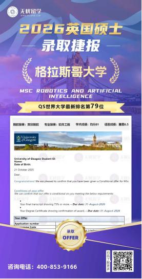 录取院校:格拉斯哥大学-MSc Robotics and Artificial Intelligence