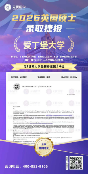 录取院校:爱丁堡大学-MSc Teaching English to Speakers of Other Languages