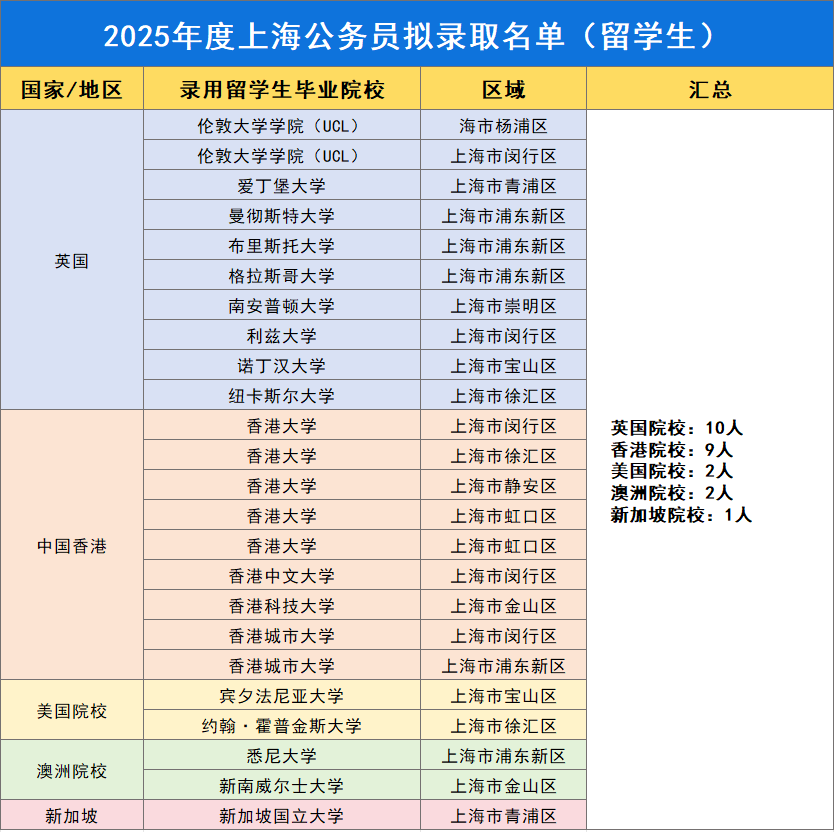 💡这两份名单揭示出一个鲜明趋势:在京沪两地的拟录用留学生中,硕士学历是“标配”,且毕业院校高度集中于英国、中国香港和澳洲的世界名校。