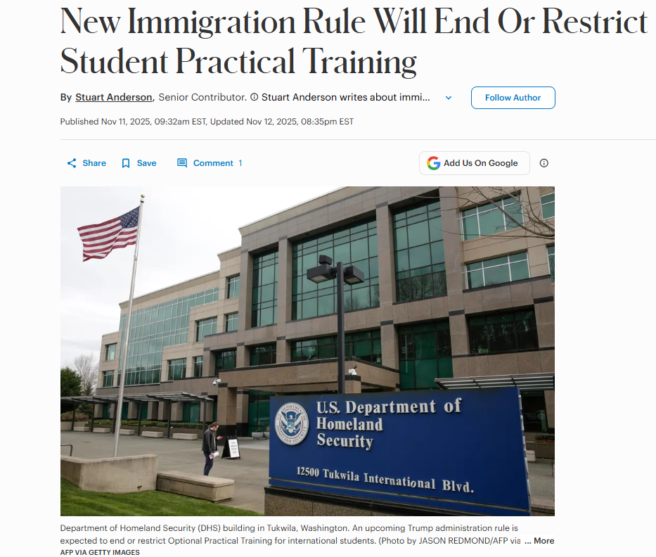 近日美媒报道,特朗普政府可能会终止或收紧针对国际学生的OPT计划。此举旨在解决欺诈和国家安全问题,保护美国工人不被外国公民取代,以及强化学生与交流访问学者项目(SEVIS)的监管机制。据悉,该移民政策已列入公共监管议程,可能会在年底前或2026年上半年出台。