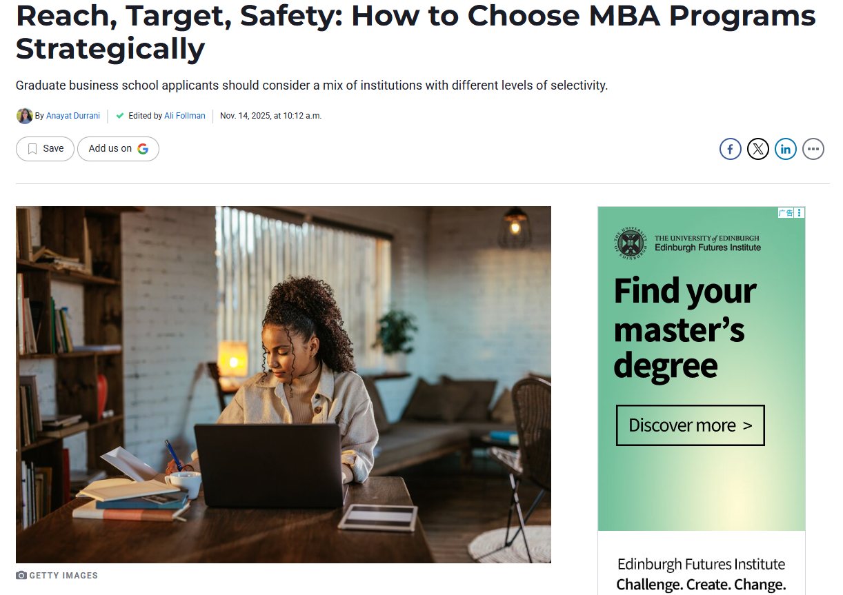 MBA项目的录取竞争依然激烈,招生决策也存在不确定性,因此,申请不同梯次的学校并确保每所都是合适的选择至关重要。