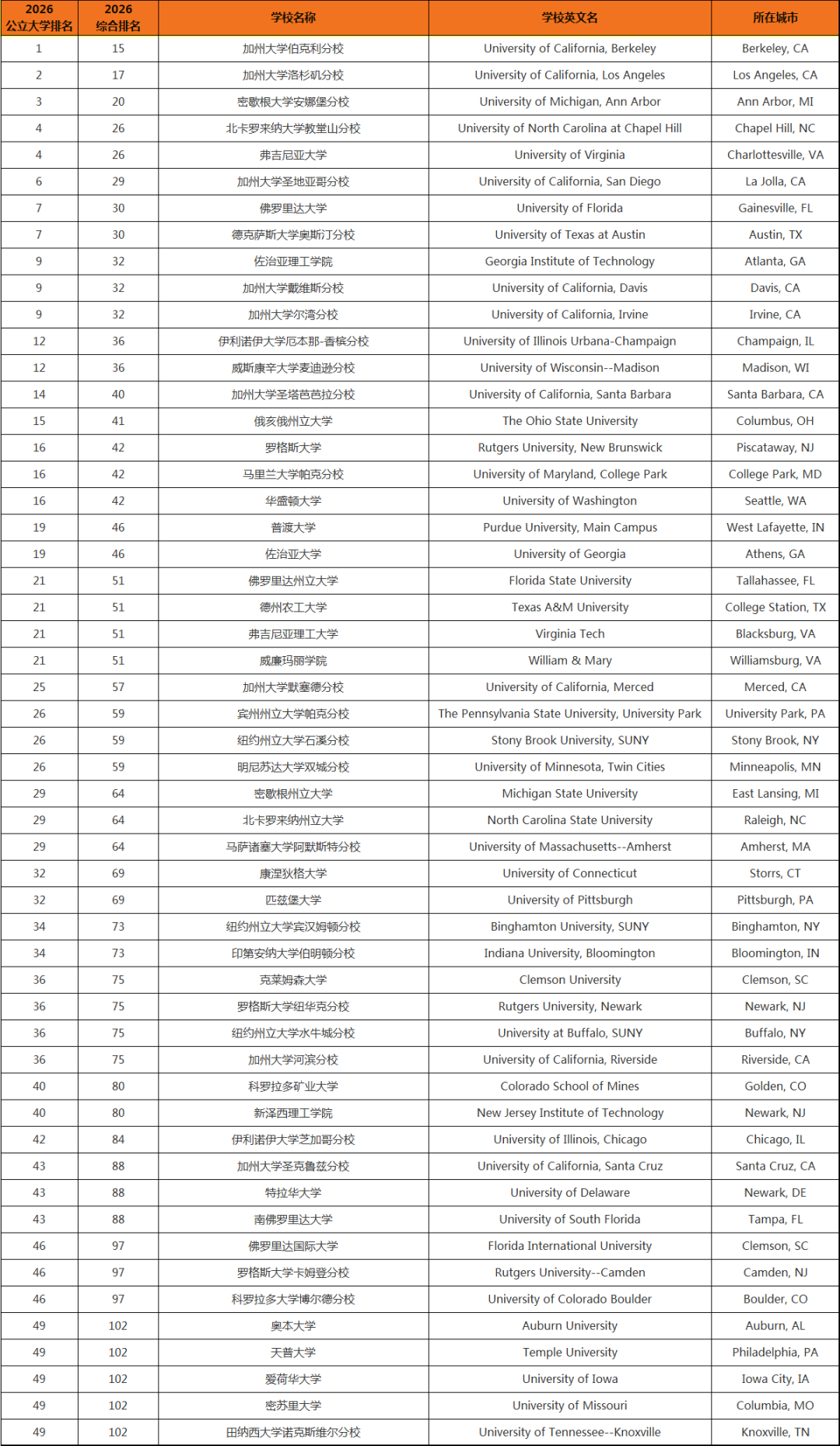 美国公立大学凭借扎实的教育质量、相对亲民的学费和庞大的校友网络,向来被视为高性价比的留学选择。如果你想申请美国公立大学,那么这份排名非常值得参考。