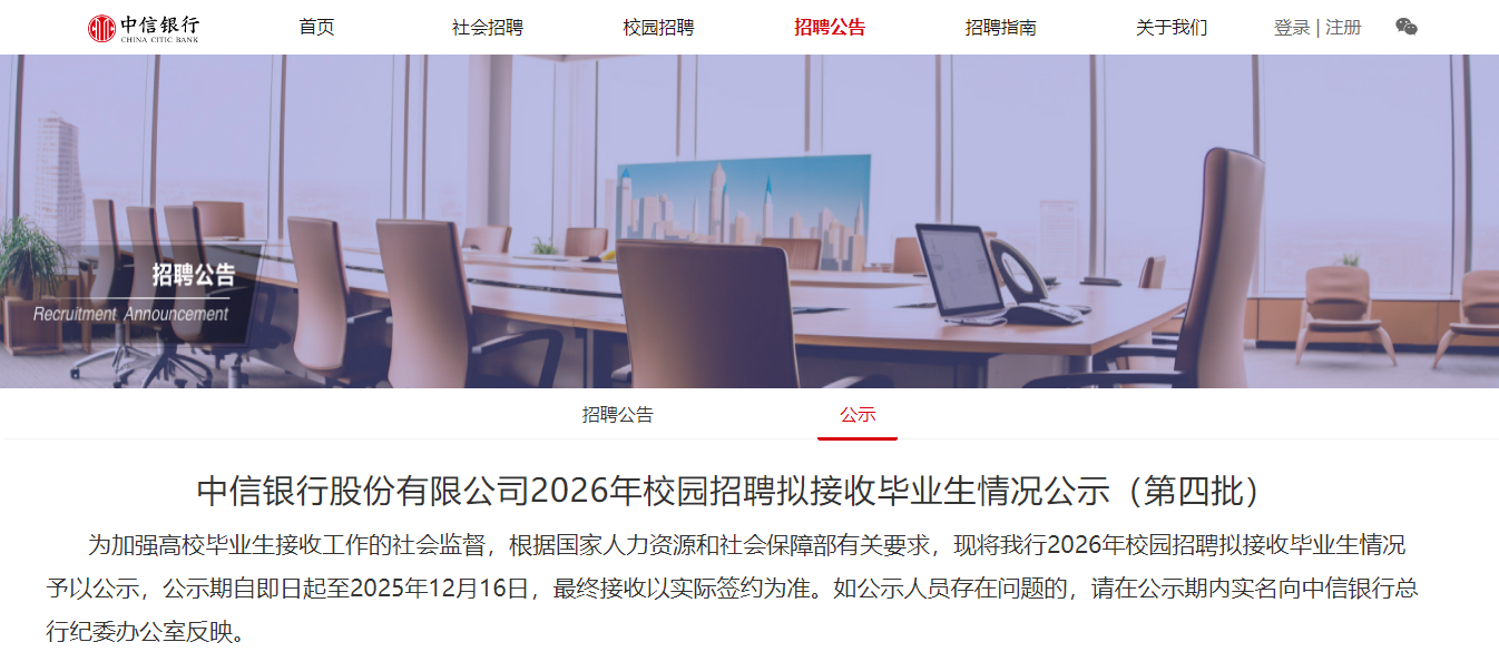 打算留学回国就业的同学们看过来:近日,中信银行公布了2026年校招第四批录用名单。这次录取的206人中,其中留学生占了53人——超过四分之一的录取名额!