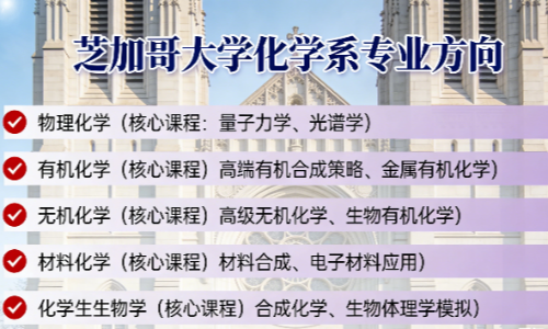 芝加哥大学化学系项目为学生提供了五个精细化的专业方向选择,学生需在选定方向内至少修读3门核心课程,确保学习的深度: