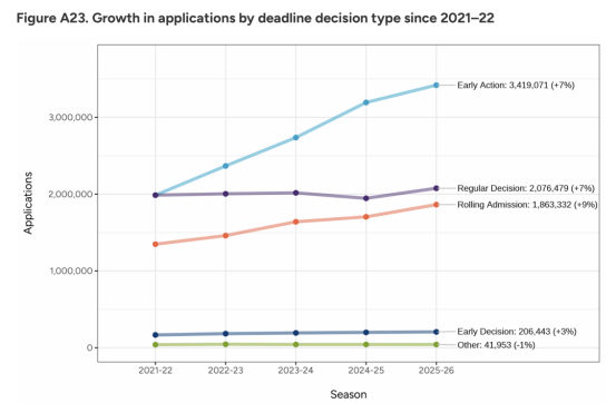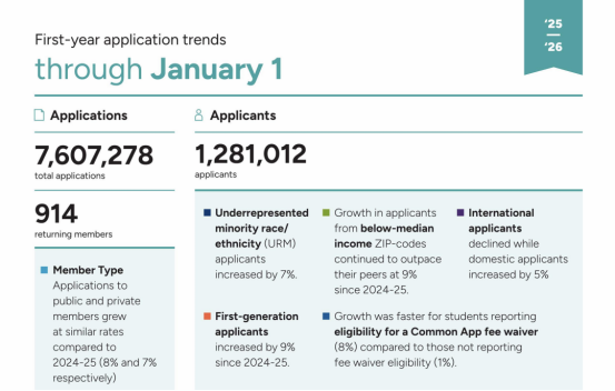 再2025~2026申请季中,截止到26年1月1日,一共有1281012名学生通过Common App提交了7607278份申请。