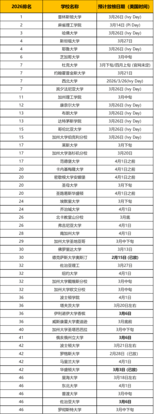 对于奋战已久的申请党而言,精准掌握美国综合大学 Top50与美国文理学院 Top30的放榜日期,是稳住心态、从容应对录取结果的核心前提。