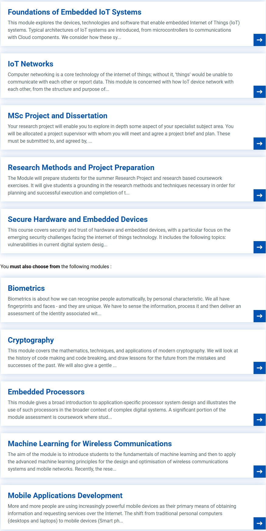 在这门物联网理学硕士课程中,你将获得以下方面的知识和实践技能: