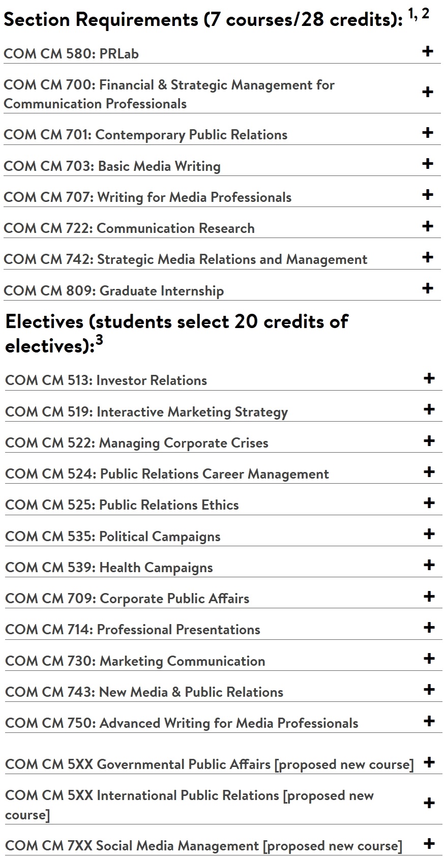 公共关系理学硕士(MS in Public Relations)课程旨在不仅为学生从事公共关系及相关领域的职业做好准备,还为他们毕业后有可能继续攻读博士学位进行学术深造奠定基础。自1947年作为全球首个大学层面的公共关系学位课程开办以来,该公共关系理学硕士课程的毕业生已在众多领域成功就业,涵盖企业、非营利组织、公共事务以及基于媒体的传播等行业。该课程有效融合了理论、研究与实践,助力学生深入理解媒体关系、跨文化事务、数字表达、伦理与危机传播以及活动策划策略。此外,该研究生学位课程还提供了一系列基于方法论和实践的策略,用于在人际、群体及公众层面构建复杂的信息传达和推广活动。