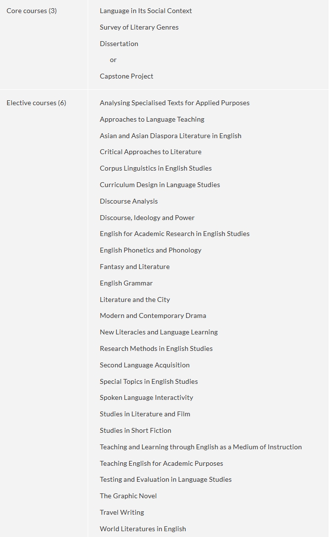 在英语研究文学硕士课程中,学生将拓展英语语言知识,培养对英语语言学、文学和文化领域的理论与研究的批判性理解能力。学生将分析语言在多元社会文化背景及多语言社会中所扮演的角色,并留意语言在社会和专业语境中的变化。他们还将有机会通过研究文学与文化研究中的关键问题,加深对英语语言的了解。该课程的两个研究方向相辅相成,助力学生构建对英语语言的多维度认知,而这一技能在许多职业领域都备受青睐。完成课程后,学生将为从事英语教学工作或继续深造做好更充分的准备。本课程师资力量雄厚,教师拥有丰富的国际及地区研究教学经验。