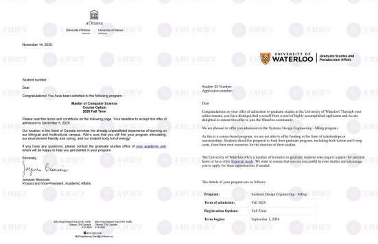 这种清晰的定位的,让无忧留学团队能够精准匹配两所院校的录取偏好,针对性打造申请材料,同时实现“双保险”,最终成功斩获两所名校录取。