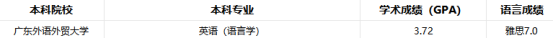 1. 优势适配:学生本科专业为英语,与香港城市大学两个录取专业高度契合,且GPA3.72、雅思7.0的成绩,均达到甚至超出专业申请要求,为申请奠定了坚实基础;其中雅思7.0的成绩,完美满足港城大语言类硕士对英语能力的核心要求,无需额外刷分补短板。
