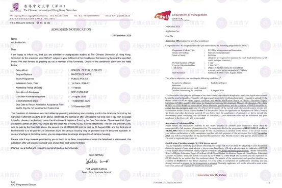 近年来,香港高校及优质中外合作办学院校凭借优质的教育资源、国际化的教学氛围及广阔的就业前景,成为内地学生硕士深造的核心选择。2026升学申请季,无忧留学依托深耕行业的专业积淀、精准的申请规划能力及全流程定制化服务,持续助力不同背景学生实现升学突破,其中就包括来自双非院校的深圳大学同学,成功斩获香港城市大学(QS63)及香港中文大学(深圳)(QS32)两大名校硕士录取,用实力诠释“专业护航,成就每一份升学梦想”的品牌使命,彰显无忧留学在香港及中外合作办学申请领域的雄厚实力。