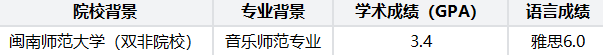 本次斩获双offer的学生,来自双非院校闽南师范大学音乐师范专业,在无忧留学老师的全程护航下,凭借扎实的专业基础、清晰的申请定位,成功突围激烈竞争,实现双校录取的圆满结果。以下为学生的具体背景及录取详情: