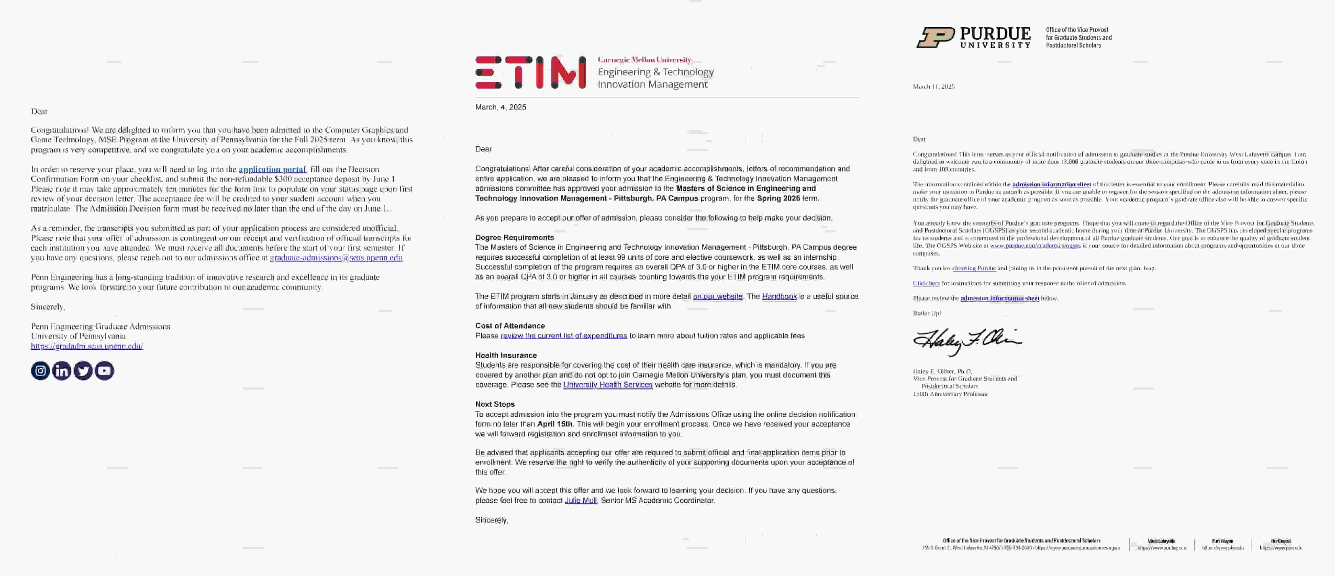 申请亮点 | 武大985顶尖工科背景,计算机专业基础扎实,均分达标且核心课程突出,托福高分无短板,精准适配3所名校工科及交叉工科专业偏好,成功斩获藤校+工科圣殿+工科王牌三校录取,实现陆本冲美研的高质量突破。 |