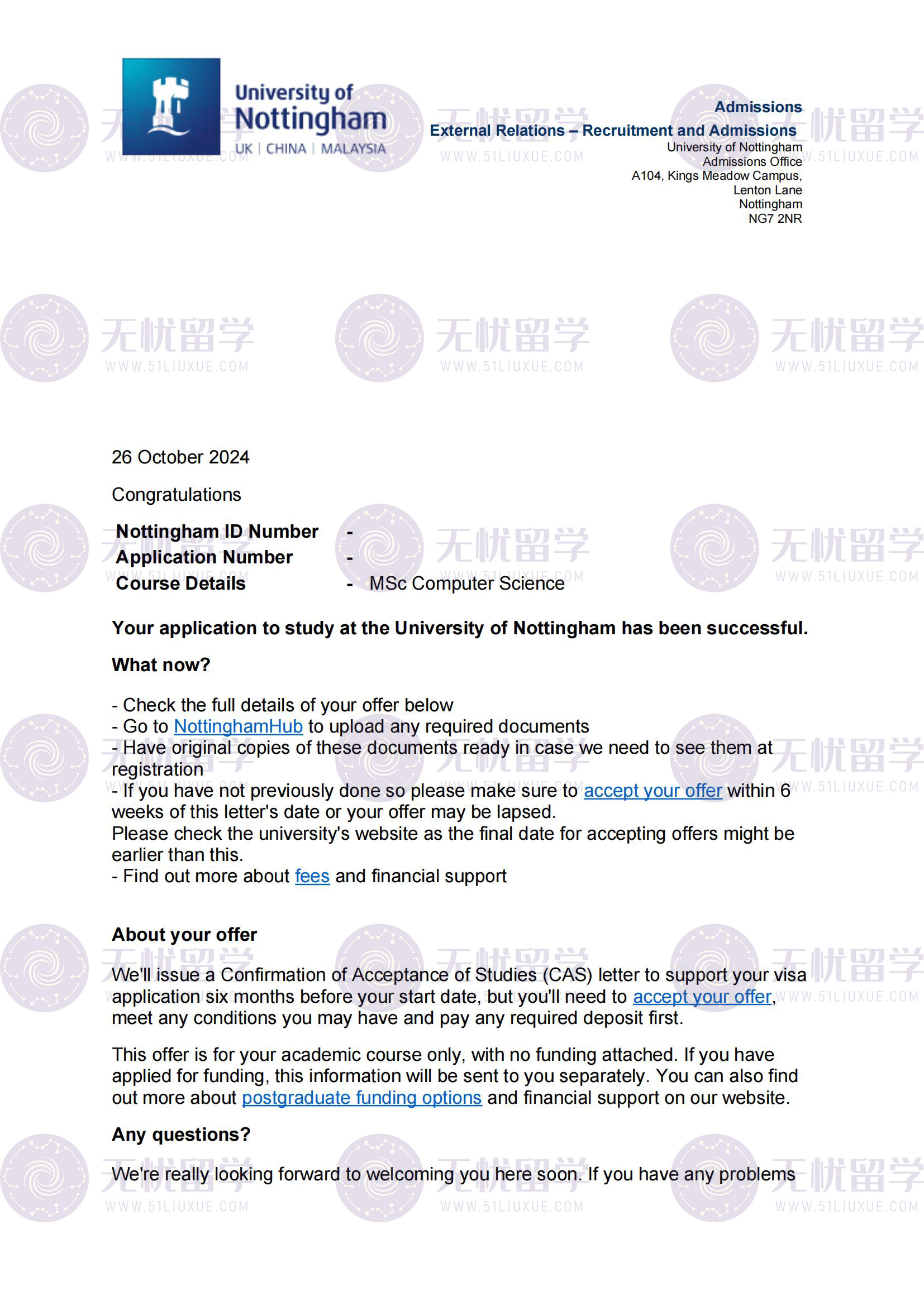 英硕申请竞争日趋激烈,院校审核愈发严格,跨专业申请、低均分逆袭、往届生突围成为最受关注的三大申请难点。作为专注英国留学申请的服务机构,无忧留学在近几年持续以高录取率、高匹配度、高满意度交出亮眼答卷,其中P同学重庆大学药学往届生、均分75+,成功斩获诺丁汉大学MSc Computer Science录取的案例,更是成为25fall跨专业申请的典型范本。本文将分析该同学的申请全流程,复盘25fal英国硕士申请选题逻辑,解读无忧留学的服务优势,为后续申请者提供可落地的参考方案。