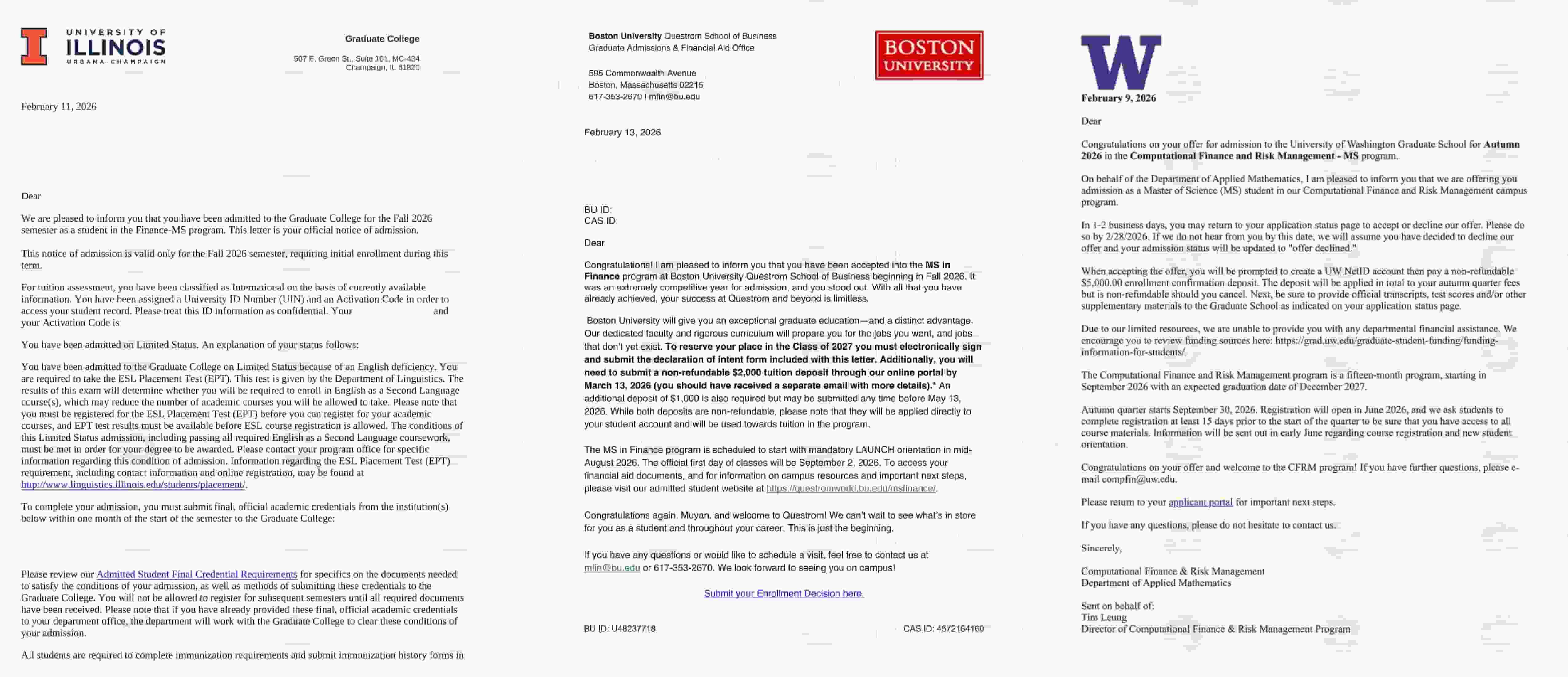 录取专业:MS in Finance【金融硕士,MSF】