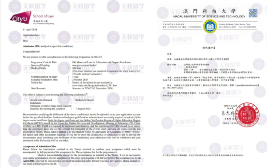 本次分享的学生为双非院校背景,凭借优异的学术表现与无忧留学的精准规划,成功斩获澳门科技大学、香港城市大学法学相关硕士录取,用实力打破“双非难申名校”的固有认知,也彰显了无忧留学在港澳院校申请中的专业优势与核心竞争力。